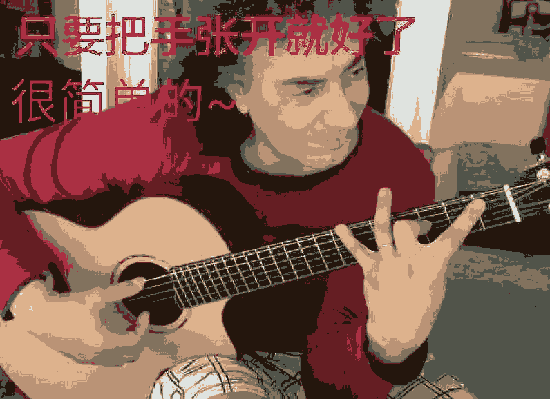用大拇指按6弦,这样就可以用抓握按弦搞定F和弦了,不必受大横按的气了。