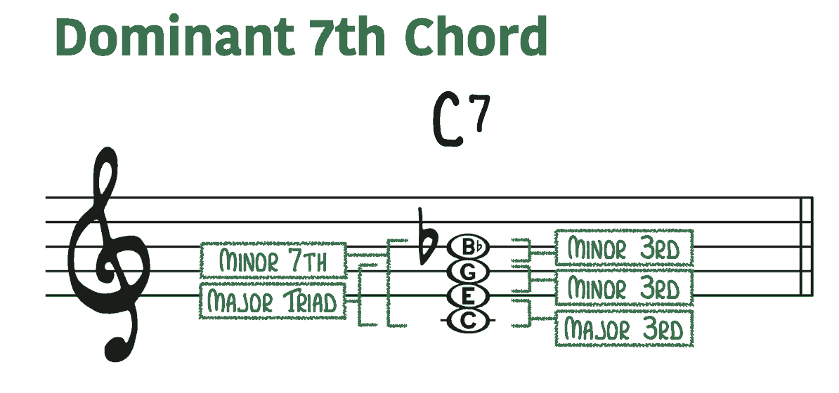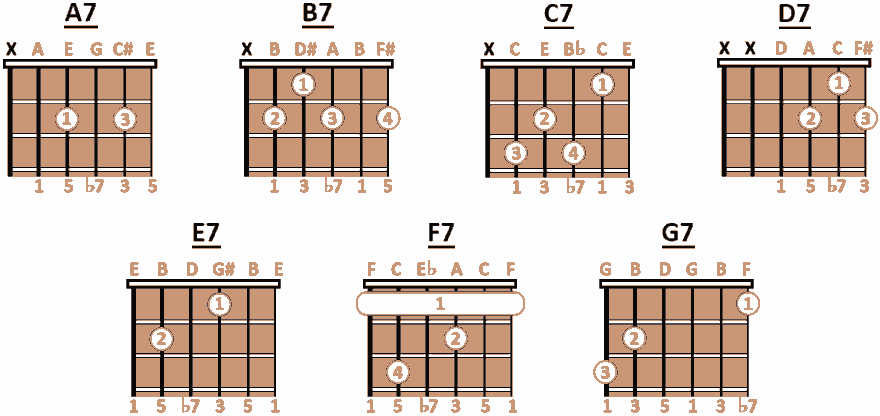 说的是属七和弦其实就是大小七和弦,由一个大三和弦增加一个小七度音,比如5 7 2 4,或者1 3 5 b7。