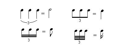 按道理也有三分音符,三分之一的音符就是三连音,同理也有3/4的音符,四分之三音符就是二分附点音符。