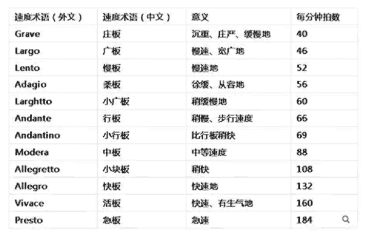 传统上乐曲速度通常用意大利语标记。